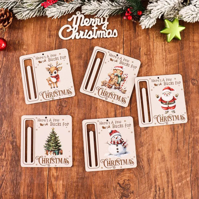 5pcs Christmas Wooden Money Cards – Rustic Holiday Gift Set 2025–2026 🎄✨